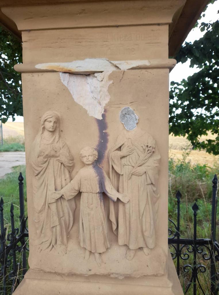 Kříž byl zásahem blesku poničen a z důvodu, aby nedošlo k ohrožení kolemjdoucích a projíždějích vozidel, byl kříž z podstavce dočasně odstraněn. Po zhotovéní nového kříže, dojde k jeho umístnění na opravený podstavec.